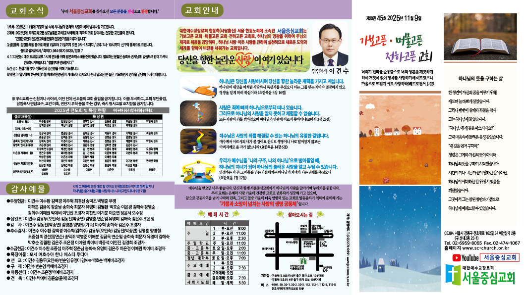 2025년 11월 9일(둘째 주일) 주보입니다.