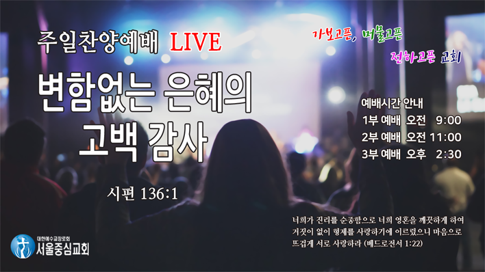 서울중심교회 2025년 11월 22일 주일 3부예배 [변함없는 은혜의 고백 감사]