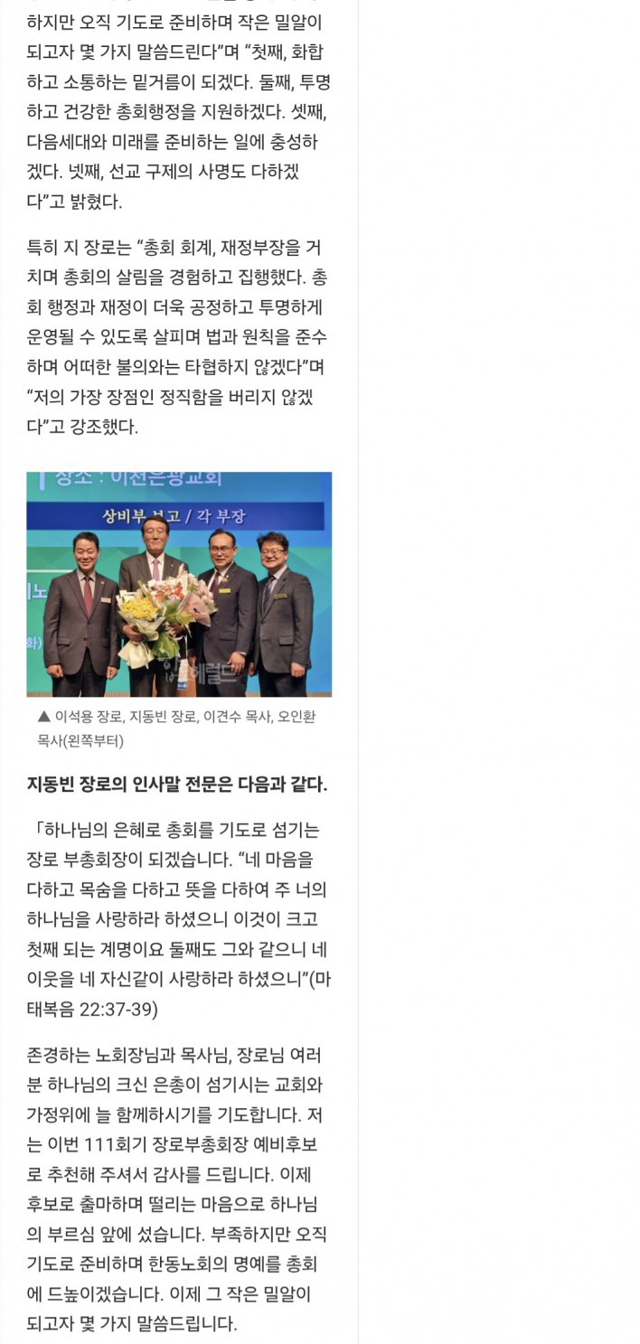 서울한동노회에서 부총회장으로 추천한 지동빈 장로 인터뷰 기사