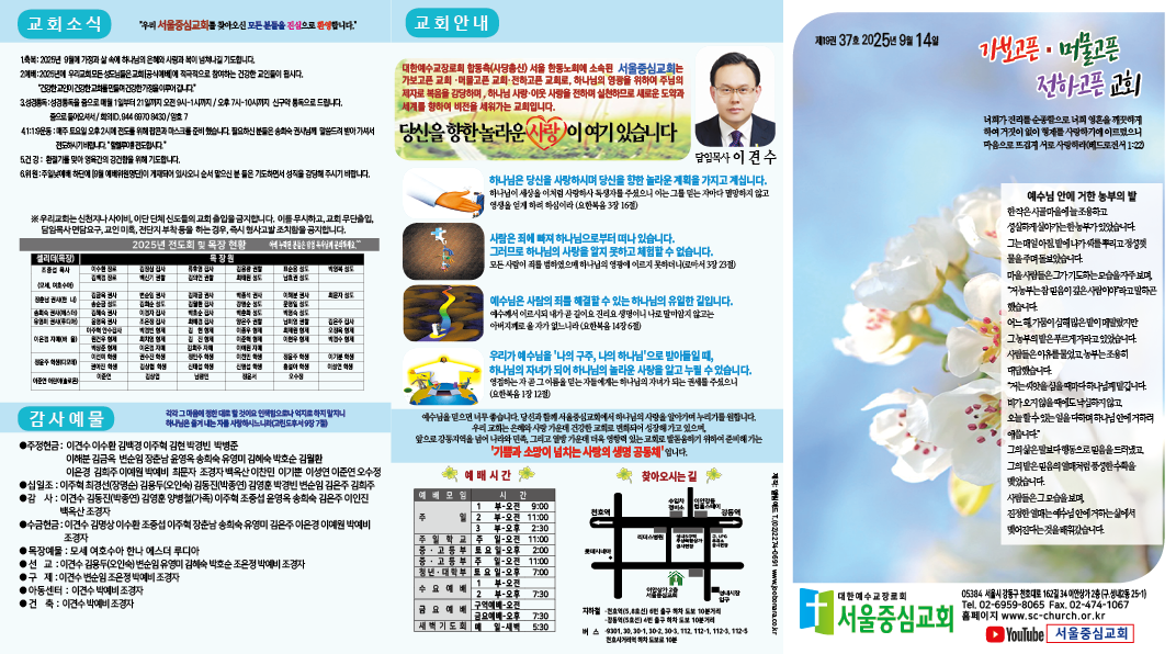 2025년 9월 14일(둘째 주일) 주보입니다.
