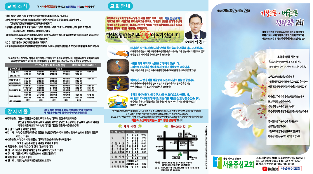 2025년 9월 28일(넷째 주일) 주보입니다.