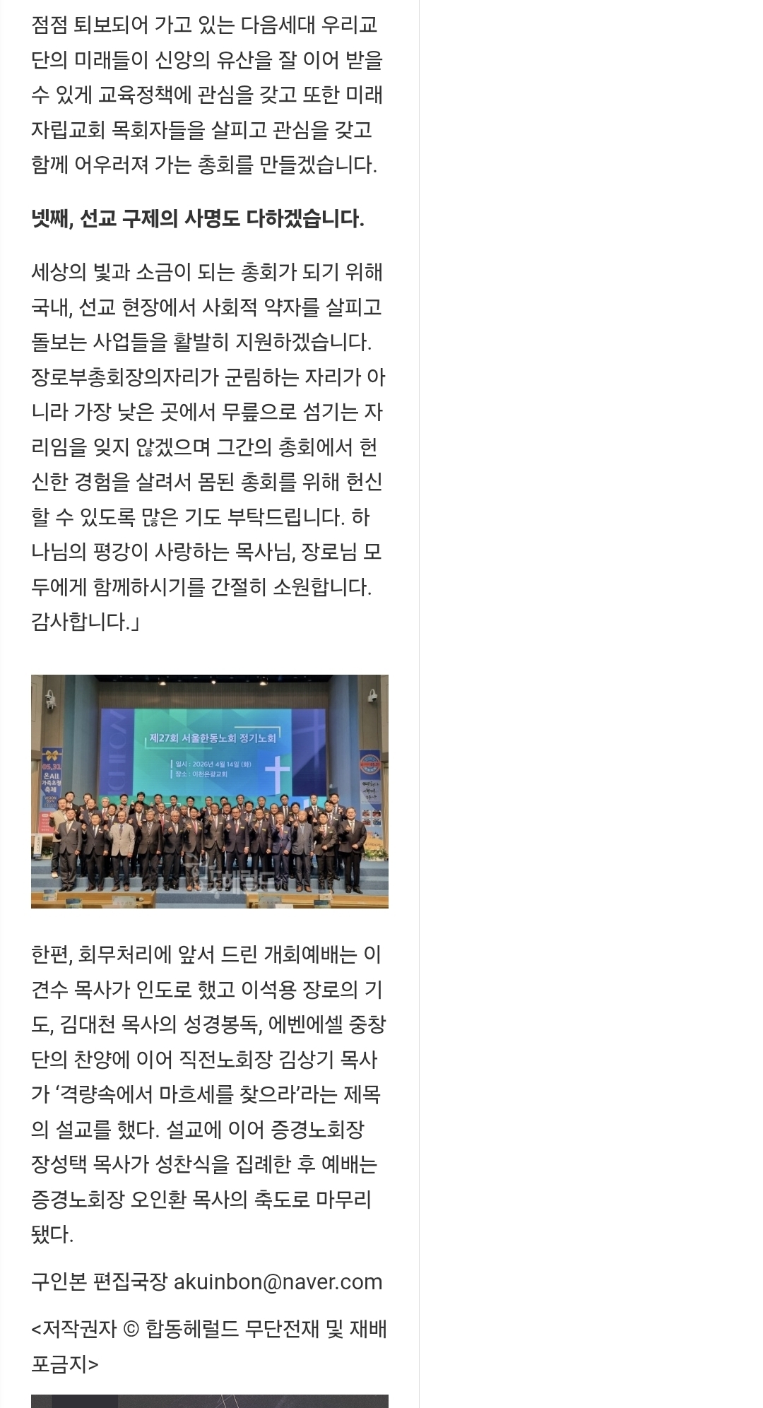 서울한동노회에서 부총회장으로 추천한 지동빈 장로 인터뷰 기사